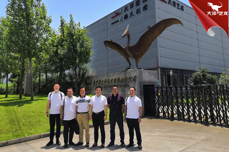 自貢市大洋藝術有限責任公司簡介自貢市大洋藝術有限責任公司,為中國恐龍展品制作基地,成立于2009年,是專業從事恐龍化石骨架標本模型、仿真活體機器恐龍、仿真雕塑恐龍、玻璃鋼恐龍、恐龍游樂場互動設備等展品的研制開發、出售和展覽的高科技企業。并在中國古生物專家的指導下進行開發制作恐龍和仿真動物展品,所制作的恐龍展品,被中國科學院鑒定為“優秀科研作品”,被譽為“侏羅紀”的再現者。公司占地面積30000平方米,有一支專業研制恐龍標本模型和機器恐龍展品的職工隊伍和一套具有先進性能的生產設備,年生產能力為500萬美元,其中約70%的出口。我們研制和生產的恐龍展品,以其造型逼真、表皮質感強、動作協調自如、組合情節科學、價格合理、售后服務佳而倍受國內外客戶的青睞和好評。十多年來,我們先后為美國、加拿大、阿根廷、秘魯、匈牙利、奧地利、荷蘭、澳大利亞和我國的香港、臺灣地區以及北京自然博物館、天津自然博物館、上海自然博物館、重慶自然博物館、浙江自然博物館、成都理工大學博物館、太原中國煤炭博物館、內蒙二連浩特恐龍博物館、武漢中國地質大學博物館、西峽恐龍蛋博物館、朝陽鳥化石博物館、河源恐龍博物館、常州中華恐龍園、云南祿豐世界恐龍谷等地區的博物館和恐龍主題公園以及人民公園制作和提供了相當數量的恐龍展品。同時,先后為重慶恐龍公園、海南恐龍公園、晉江新世紀恐龍公園、番禺古生物博物館、東莞古生物博物館、西峽恐龍蛋博物館設計和陳列布展。